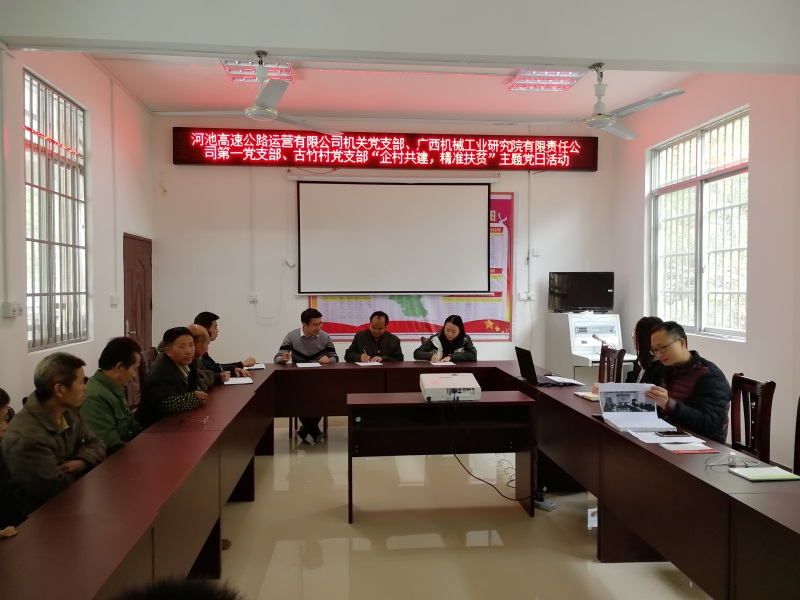 為激發(fā)支部黨建工作新活力,錘煉提升企業(yè)黨員黨性修養(yǎng),強(qiáng)化黨建引領(lǐng),助力脫貧攻堅(jiān),推動(dòng)黨建工作與扶貧工作相互促進(jìn)。11月28日,廣西機(jī)械工業(yè)研究院有限責(zé)任公司第一黨支部前往大化縣扶貧點(diǎn)七百弄鄉(xiāng)古竹村,與河池高速公路運(yùn)營有限公司機(jī)關(guān)黨支部、古竹村黨支部聯(lián)合開展“企村共建,精準(zhǔn)扶貧”主題黨日活動(dòng)。