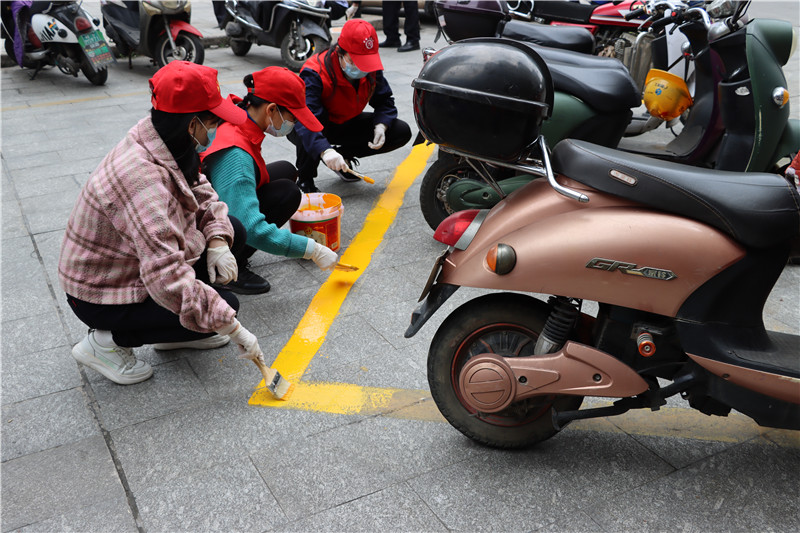 在開展“我為群眾辦實事”志愿服務(wù)進(jìn)社區(qū)活動中,黨員們根據(jù)香桃社區(qū)的服務(wù)需求,為河西桃花源小區(qū)劃定小轎車、摩托車停車線,幫助居民規(guī)范停車秩序,滿足群眾停車需要,保障群眾出行安全,黨員們的暖心行動得到居民的點贊和好評。