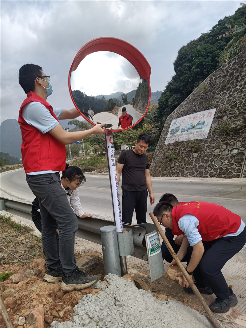 根據(jù)機械院與峰洋村在安全隱患排查工作中發(fā)現(xiàn)的問題,志愿者團隊在村內5處三叉路口安裝了凸面鏡,有效解決了農村拐彎處視線不足的交通安全隱患。