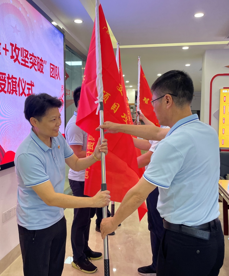 公司黨委舉行“交投先鋒+攻堅突破”授旗儀式。公司各基層黨組織結(jié)合中心工作和重點任務(wù),成立了“交投先鋒+服務(wù)保障攻堅突破”團(tuán)隊、“交投先鋒+保供應(yīng)攻堅突破”團(tuán)隊、“交投先鋒+機電項目攻堅突破”團(tuán)隊等10個攻堅突破團(tuán)隊,使每一名黨員都成為一面旗幟,把基層黨組織建成黨旗高高飄揚的戰(zhàn)斗堡壘,助推公司各項業(yè)務(wù)發(fā)展。