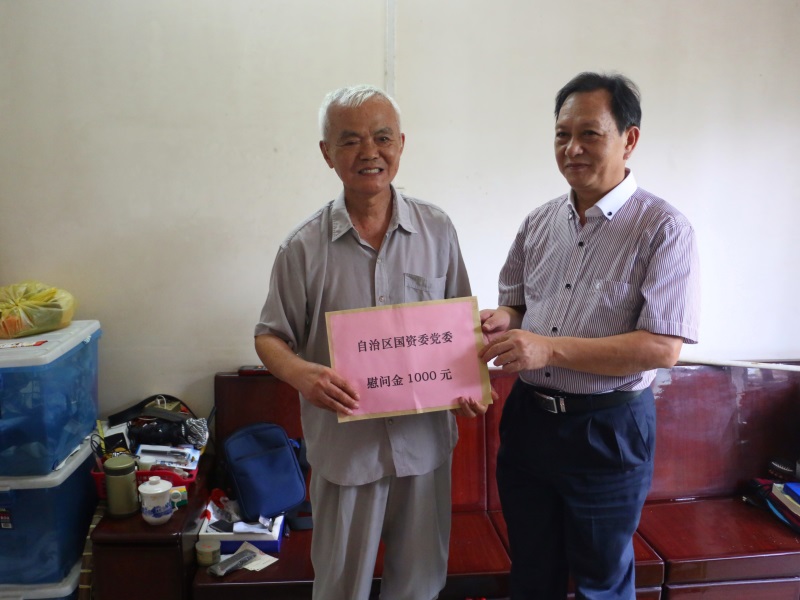 圖3 自治區(qū)國(guó)資委李振杰副主任代表黨組織為老黨員送上慰問(wèn)金