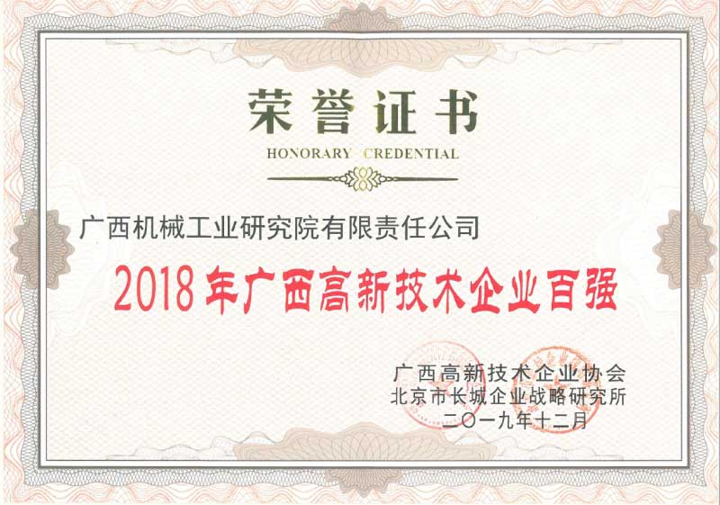 機械院公司榮登2019年廣西高新技術(shù)企業(yè)百強TOP29