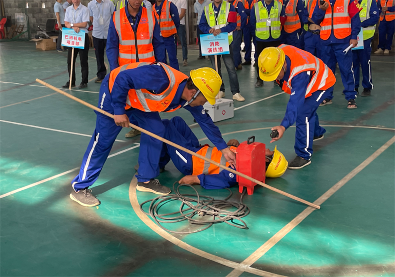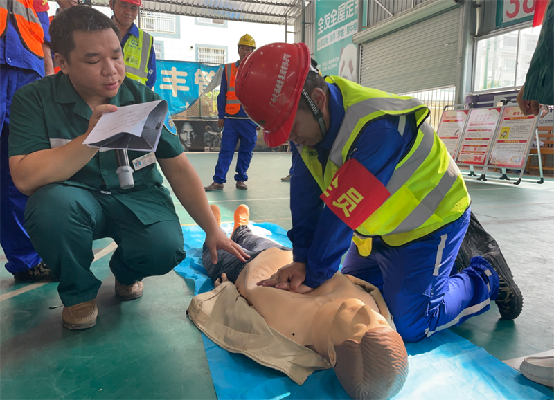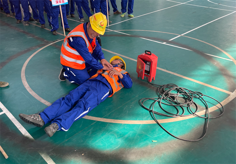 活動(dòng)現(xiàn)場,項(xiàng)目部安全總監(jiān)對(duì)綜合應(yīng)急救援演練方案進(jìn)行了詳細(xì)的講解。參訓(xùn)人員分組對(duì)施工中常見的觸電、高處墜落應(yīng)急救援、觸電事故應(yīng)急救援、各類消防器材的使用進(jìn)行了演練。醫(yī)護(hù)人員現(xiàn)場示范了中暑急救、胸外擠壓急救措施、人工呼吸方法、骨傷綁扎固定等應(yīng)急救援措施。通過形象生動(dòng)地講解示范和實(shí)踐演練讓參訓(xùn)人員深刻理解應(yīng)急救援知識(shí),掌握急救措施,提升事故防范處理能力,有效防范安全事故發(fā)生。