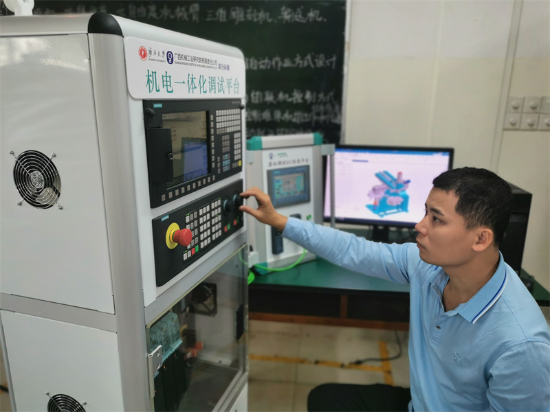 隨著《中國(guó)智造2025》的深入實(shí)施,智能制造領(lǐng)域的自動(dòng)化智能化水平都大幅提升。李修明發(fā)現(xiàn)企業(yè)都面臨一個(gè)嚴(yán)重的挑戰(zhàn)——技能型人才的缺失。通過(guò)與高校對(duì)接,展開(kāi)深入調(diào)研,他發(fā)現(xiàn)目前廣西工科院校的研究、教學(xué)工作與學(xué)生就業(yè)方向、企業(yè)需求普遍存在結(jié)構(gòu)性矛盾。一是學(xué)生的專(zhuān)業(yè)知識(shí)、技能訓(xùn)練與企業(yè)招聘技能需求不匹配,學(xué)生畢業(yè)后在求職和實(shí)際應(yīng)用方面存在困難;二是課程內(nèi)容設(shè)置與現(xiàn)代化制造模式脫節(jié),學(xué)校缺乏與時(shí)俱進(jìn)的信息化教學(xué)和實(shí)訓(xùn)環(huán)境。