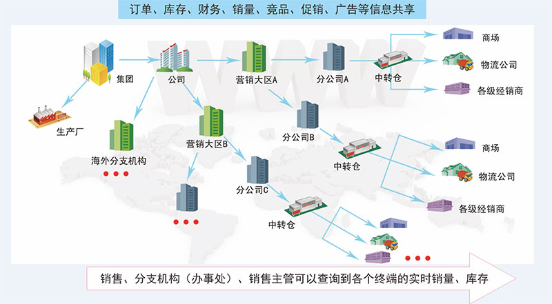 分銷管理信息系統(tǒng)針對(duì)大中型企業(yè)分銷業(yè)務(wù)管理特點(diǎn),全面支持訂單、庫(kù)存、配送、財(cái)務(wù)、營(yíng)銷活動(dòng)、市場(chǎng)活動(dòng)、價(jià)格管理等企業(yè)分銷業(yè)務(wù)職能,實(shí)現(xiàn)包含總公司、營(yíng)銷大區(qū)、分公司、辦事處、供應(yīng)商、經(jīng)銷商、分銷商、連鎖店/專賣店/專柜等企業(yè)多個(gè)經(jīng)濟(jì)單元組織的多層次分級(jí)集中管理。具備電子商務(wù)功能,支持網(wǎng)上訂單處理,彈性的行業(yè)自定義功能,具有良好的可擴(kuò)展能力。