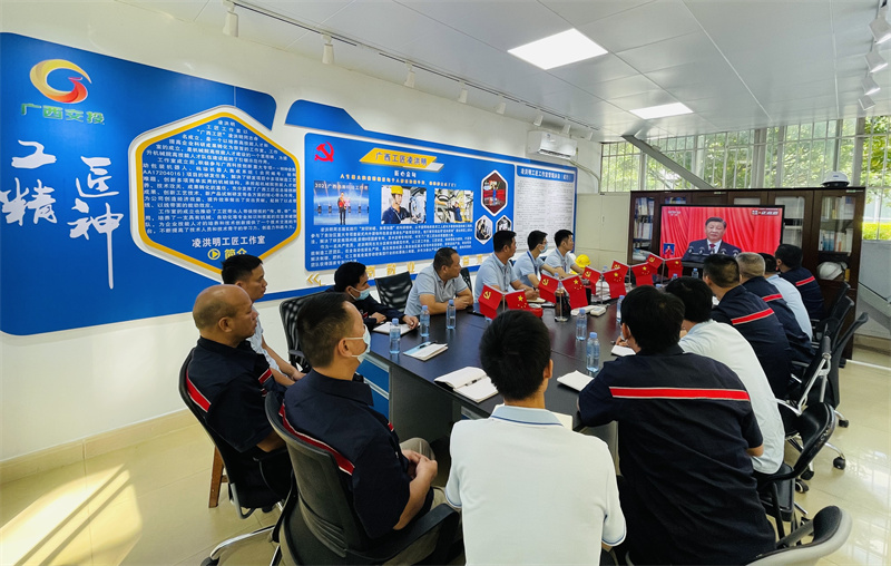 ▲各機(jī)電項(xiàng)目部收看大會(huì)直播