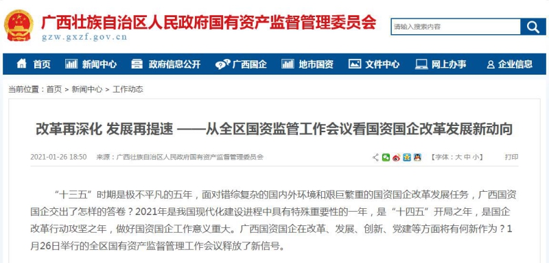 “十三五”時(shí)期是極不平凡的五年,面對(duì)錯(cuò)綜復(fù)雜的國(guó)內(nèi)外環(huán)境和艱巨繁重的國(guó)資國(guó)企改革發(fā)展任務(wù),廣西國(guó)資國(guó)企交出了怎樣的答卷?2021年是我國(guó)現(xiàn)代化建設(shè)進(jìn)程中具有特殊重要性的一年,是“十四五”開局之年,是國(guó)企改革行動(dòng)攻堅(jiān)之年,做好國(guó)資國(guó)企工作意義重大。廣西國(guó)資國(guó)企在改革、發(fā)展、創(chuàng)新、黨建等方面將有何新作為?1月26日舉行的全區(qū)國(guó)有資產(chǎn)監(jiān)督管理工作會(huì)議釋放了新信號(hào)。