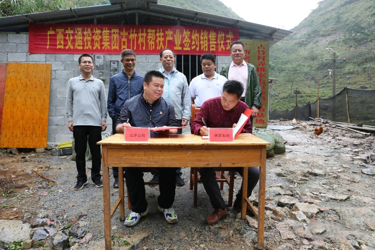 當日上午,集團公司領導分成3個專題調研組,深入到農(nóng)戶家中和古竹小學開展走訪慰問,并深入古竹村部、七百弄雞養(yǎng)殖扶貧車間、戈當移民安置點等地,分別就古竹村黨支部建設、產(chǎn)業(yè)扶貧項目、脫貧摘帽指標完成情況、移民搬遷安置工程后續(xù)工作等進行現(xiàn)場調研。期間,調研組還出席了廣西交通投資集團古竹村幫扶產(chǎn)業(yè)基地產(chǎn)品簽約銷售儀式,見證了山鄉(xiāng)公司與七百弄肉雞養(yǎng)殖扶貧車間能人簽定購銷協(xié)議。