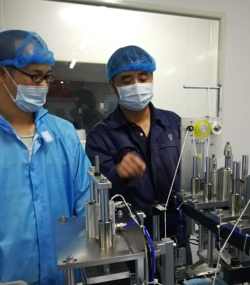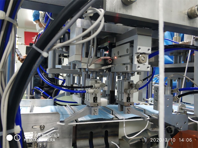 在凌洪明看來,設(shè)備一天無法正常轉(zhuǎn)動生產(chǎn),抗疫物資就要晚一天才能對外輸送,用自身本領(lǐng)讓生產(chǎn)防疫物資的設(shè)備正常轉(zhuǎn)起來是“疫”不容辭的責任,也是為疫情防控做點滴貢獻。經(jīng)過詳細詢問現(xiàn)場工人、開機觀察設(shè)備運行情況、多次檢查和調(diào)試后,凌洪明查找出了超聲波沾合氣缸氣壓不足導致耳帶粘連不牢易脫落、零部件易松動、送料不穩(wěn)定等問題,并一一給出解決方案。醫(yī)藥公司對凌洪明表示誠摯感謝和高度贊賞,并希望后續(xù)能與機械院公司簽訂合作協(xié)議,為該公司提供技術(shù)服務和培訓。