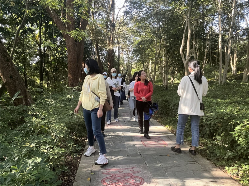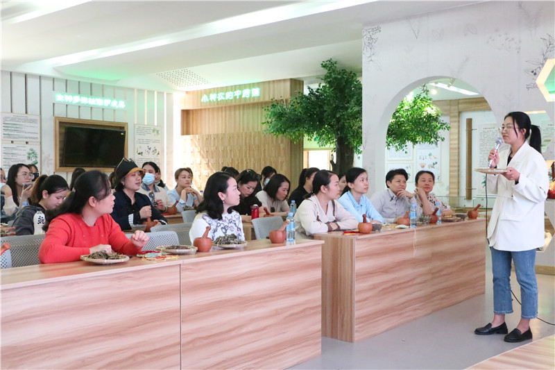 植物園現(xiàn)存藥用植物8900多種,是名符其實的“藥用植物王國”,三月的植物園內(nèi)草木葳蕤,為麗人踏青提供好去處。跟隨講解員的腳步,一行人穿過陰生藥物區(qū)、藤本植物區(qū)、植物隧道和草部等區(qū)域,中醫(yī)文化、植物園景觀特點在講解員的動人解說中緩緩鋪展開來,種類繁多的植物的生長習(xí)性、故事傳說、藥理藥效,讓大家沉浸其中,時而發(fā)聲詢問,時而賞花拍照,興趣盎然,受益良多。女神們還品嘗了植物園的特色藥茶--絞股藍(lán)茶,了解其養(yǎng)生作用及沖泡方法。